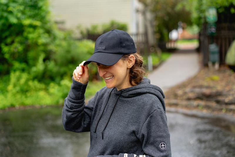 I tend to wear a basic cap from lululemon, but you could also get a cute one like a vintage-style hat that says MAMA or a modern one with a playful vibe that says MOM.