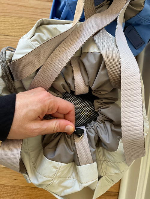 Plus, it looks like a cool and relaxed belt bag. PLUS, it’s unisex, so Dan can borrow it and wear it and look fine. Super plus, it has its own extra-wide matching changing pad, a wet wipes pocket on the backside (with magnetic closure) and space inside for diapers, diaper cream (in travel size) and a tiny bottle of hand sanitizer!