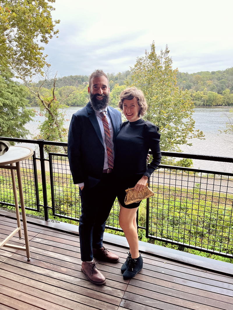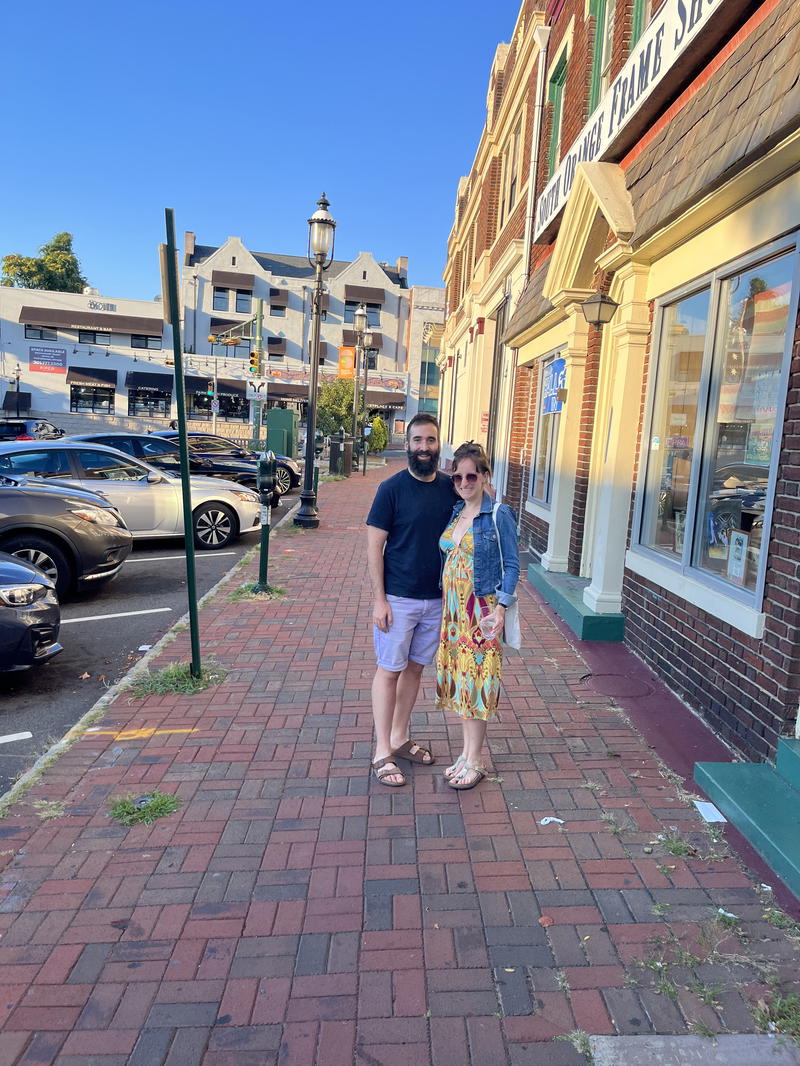 We went to an engagement party when I was 8 months pregnant and it was outside, so I was able to hide my baby bump and avoid being the “pregnant woman at the party.” I wore an open peacoat, an open cardigan underneath, and a layered scarf. I told my news only to those I was close to, and felt the stress melt away!