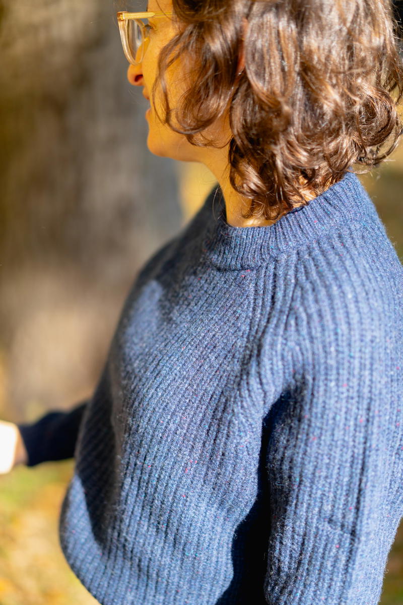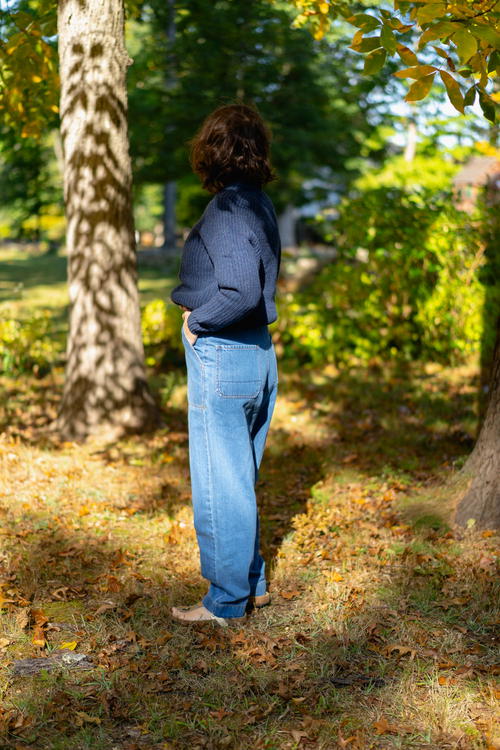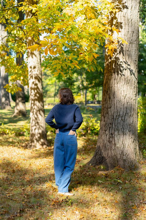 It’s warm and cozy, and I wore it first on a cool morning in the fall. In these photos, you’ll see how it fits with the Yarrel Jeans.