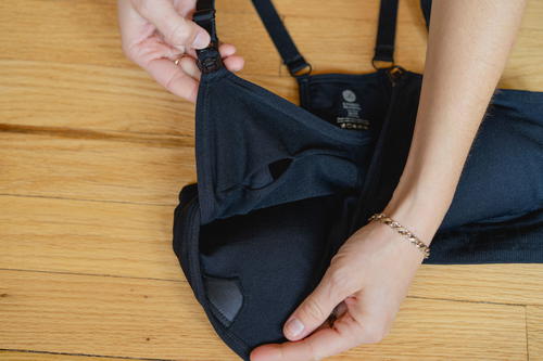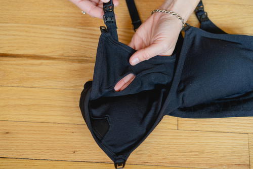 - The bra has dual functionality for pumping and nursing. The way that works is with a double clip-down system: the first clip drops down to reveal a pump-friendly opening, and the second drops down for less coverage and a nursing bra opening.