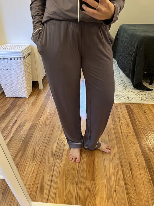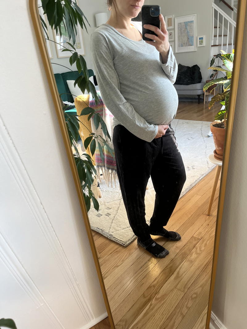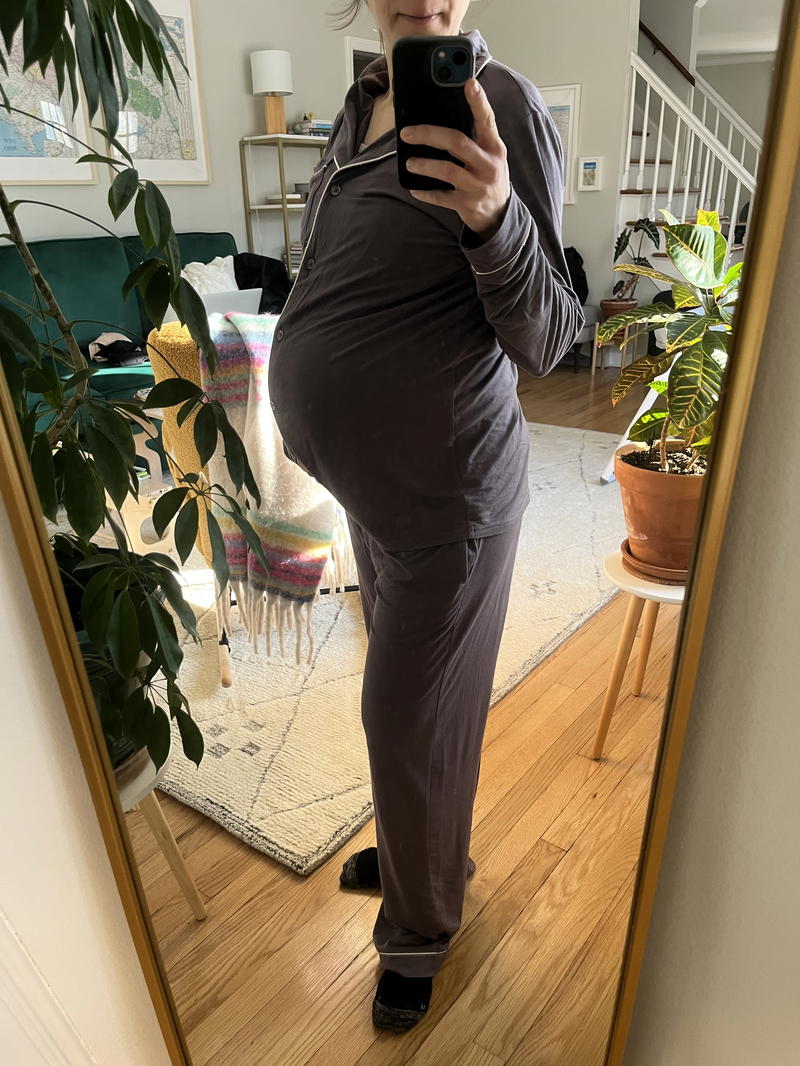 I tried on the bottoms first, and they fit so well I nearly cried. “Finally!” I wanted to rejoice. “Maternity PJ bottoms that fit me perfectly!”