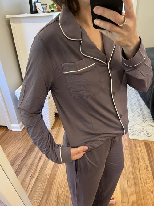 - Clea Bamboo Long Sleeve Pajama Set / Granite - XS