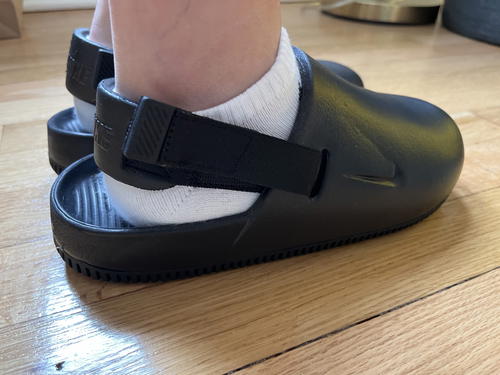 Specifically, I picked up the Nike women’s mules (with an adjustable Velcro back elastic strap) to put my feet in during my third trimester—whether in the house, or out of the house. I’ll wear them without socks, or with socks: it really won’t matter by that point.