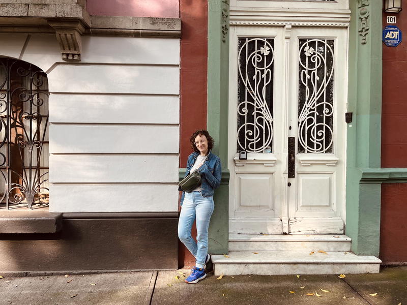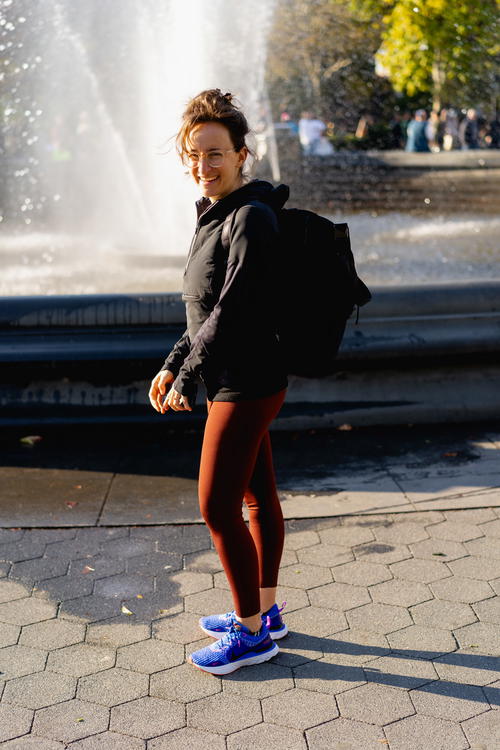 I wore them in Mexico City when we walked six miles a day. In this photo, you can see how they look with my “Mom Jeans” (this is not a joke) from Mott & Bow! I also frequently sport them with leggings, like on a day out in NYC.