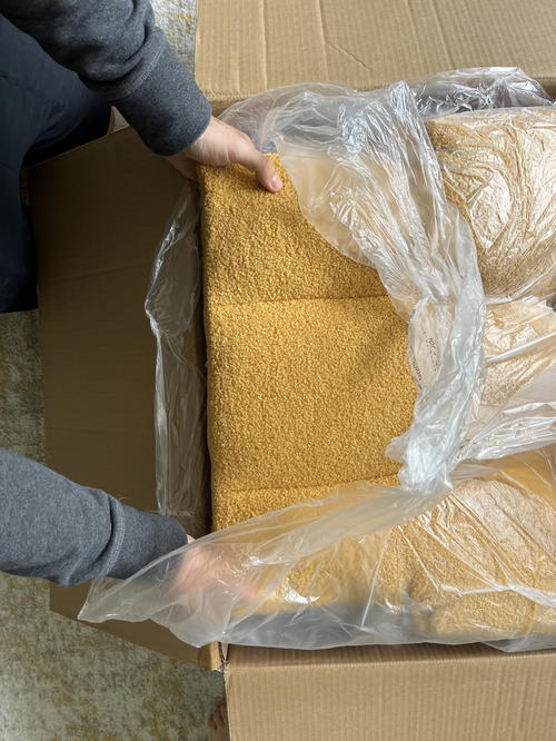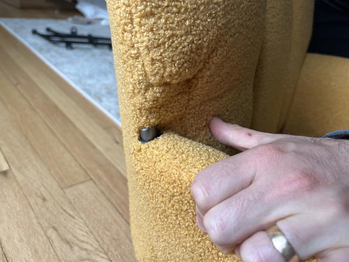 - The upholstered “teddy velvet” is where I think the product falls short. This is the same type of fabric that a teddy jacket would be made of. It’s kind of a slippery polyester. It looks nice from afar, but up close, it’s far from luxury.
