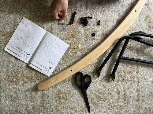 The assembly for the teddy rocking chair was not as straightforward as we thought. In summary, the chair doesn’t have so many parts, and it came with fewer pieces than, say, a desk chair.