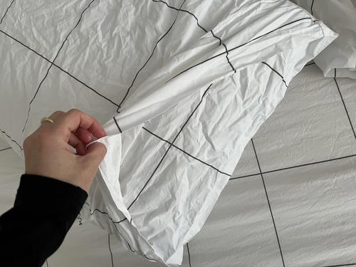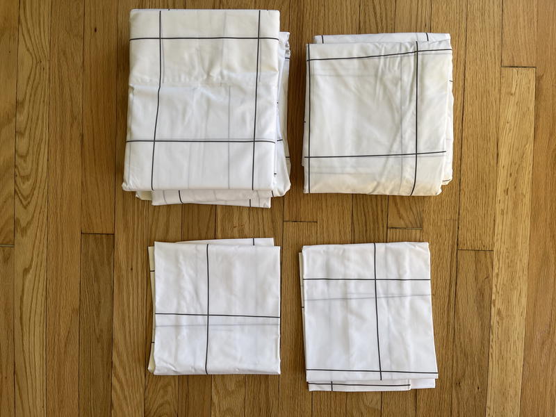 They come in a LOT of colors. I think I was drawn to the white and black “windowpane” design because it reminded me of Brooklinen (I can’t lie) sheets I had seen in their staged marketing photos. Well, here I am getting them for way less!