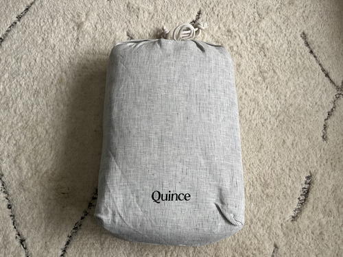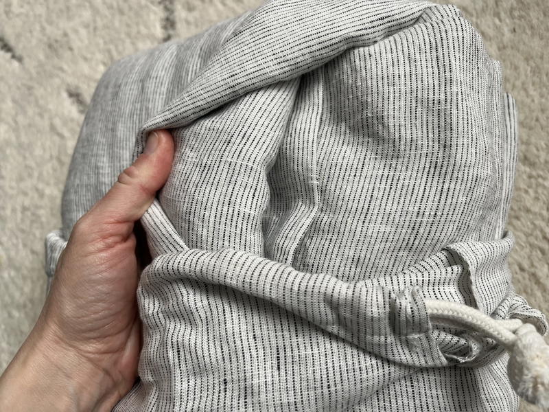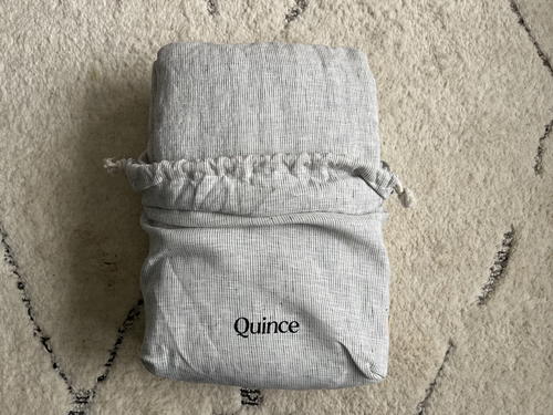 It looks like Quince upped their unboxing experience, or maybe the linen sheets are just up a notch. The European Linen sheets come in this nice drawstring bag and they are heavy. The weight of them matched the higher price point, when compared to the bamboo sheet set and cotton percale, which I find really affordable.