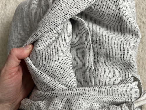 They’re made of 100% European flax. If that doesn’t mean anything to you, don’t worry: it barely means anything to me, either. Basically, “linen” as we know it is made of the fibers from a flax plant, so, it is a natural fabric just like cotton. The fabric feels firm, not loose.