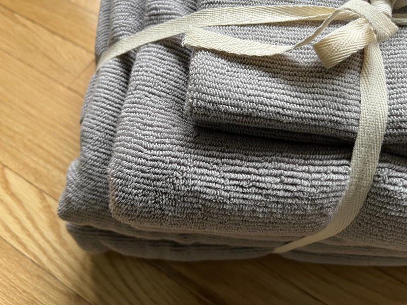 Regardless of these factors, and by this point I was spending entirely too much time deciding, I chose the Turkish Ribbed Quick-Dry Towel set in Grey. I think the simple flat ribbed look spoke to me, and they looked a little less “fluffy” for my storage purposes.