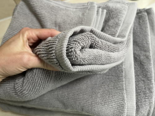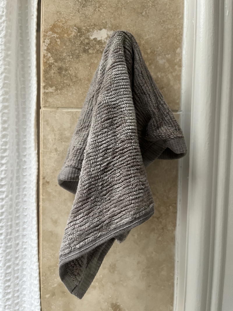 I was ready to try a lighter color for some levity, though, so choosing the light grey color in my Turkish Ribbed towel set made sense.