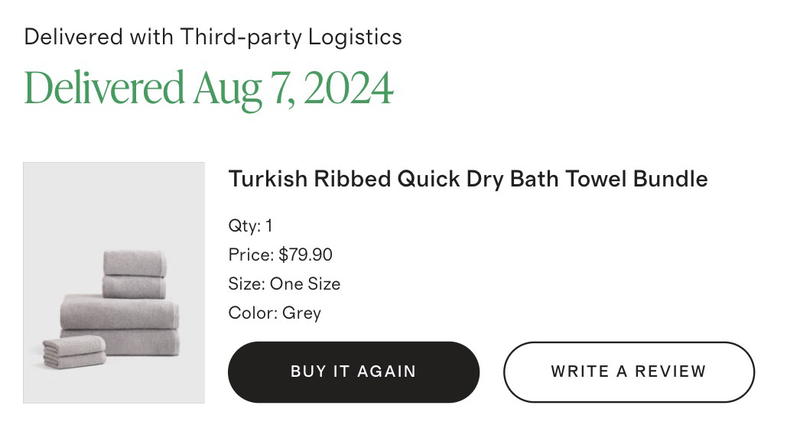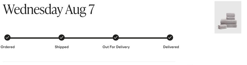 The thing is, these towels are literally coming from Turkey, so it does take a few days! I’m cool with this timeline, and I even think it’s fast. I didn’t need my towels in a rush. We don’t have any guests coming in the near future as it is!