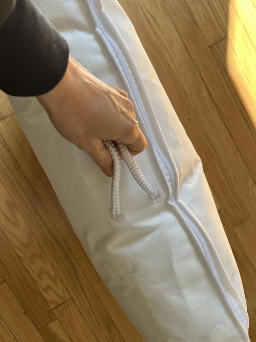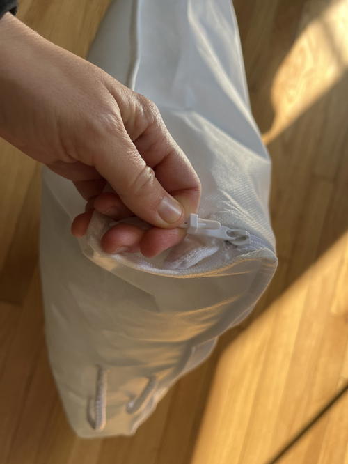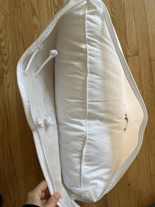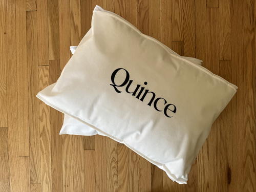I thought this was a nice touch from Quince: the pillows (I got two) each come in a storage case complete with a zipper and a carrying handle. I’ve never owned pillows that came with this touch of completeness.