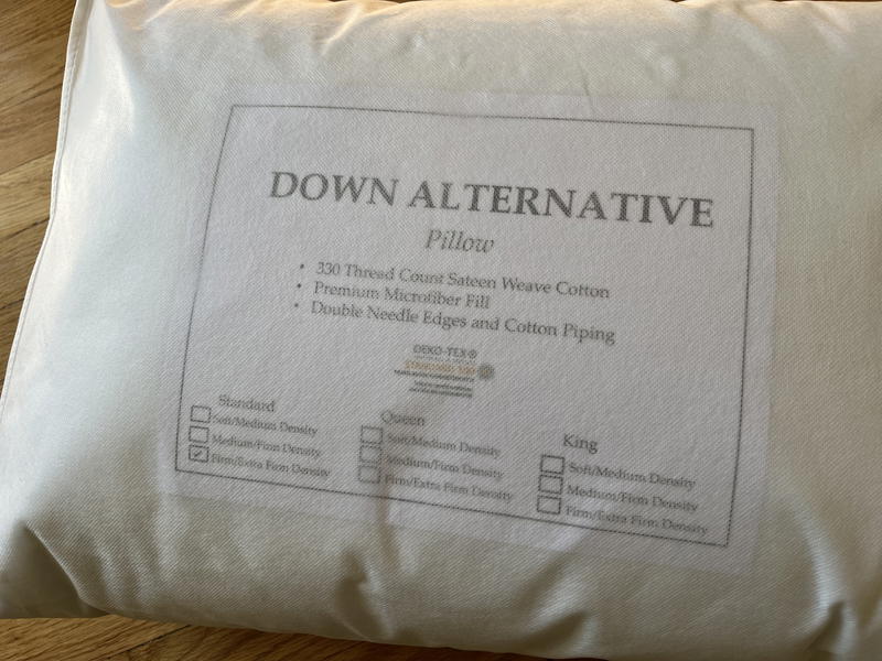 I’ll tell it how it went: as I was looking at the choices for firmness in the Quince Down Alternative Pillows, Dan suggested getting one of each of the upper two firmness levels, so we could try both.