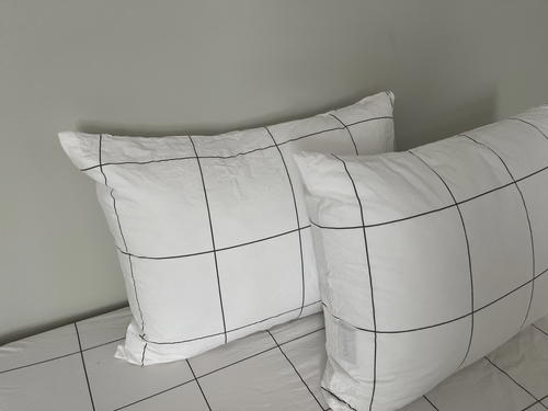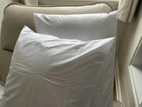 - The outer cover is 100% cotton sateen; to keep them pristine, you might want to explore the Quince Pillow protectors, which I finally got a pair of!