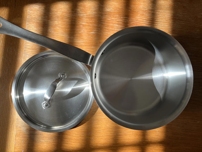 Quince stainless steel pots and pans are nice and heavy, and have a matte look to them. I like this better than the shiny style stainless steel we have from Farberware and from other brands we got on Amazon.