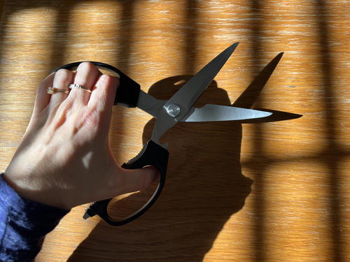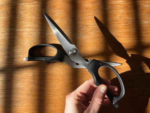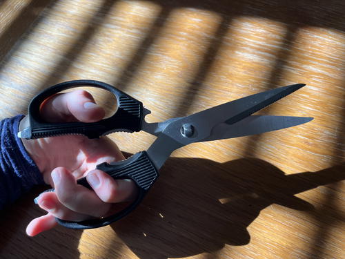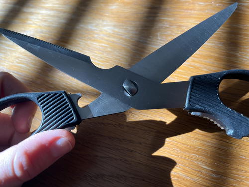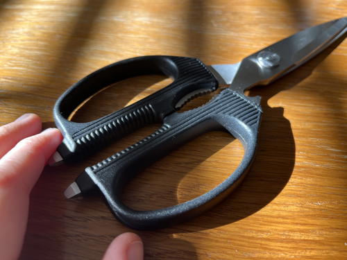 First, before I forget, here is what we want you to know before you buy these kitchen shears: they do come “apart” if you expand them too wide.