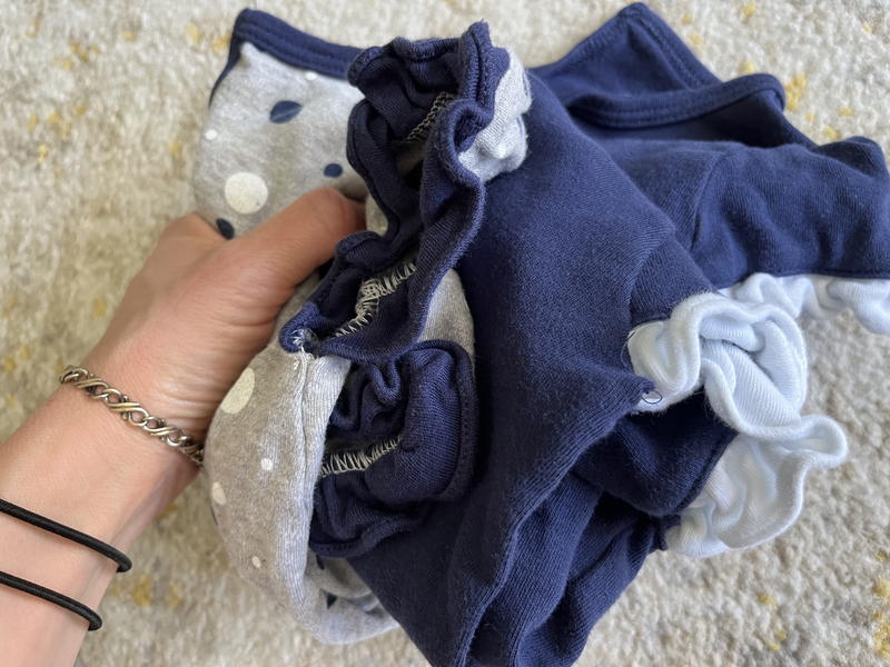 Yes, it was true! With the number of zip pajamas, onesies, pairs of pants and burp cloths I had received from Buy Nothing, I rarely had to do laundry more frequently than every 9 or 10 days. That was very helpful, because with Dan’s workout schedule and gym clothes, I would be doing OUR laundry multiple times a week as it was.