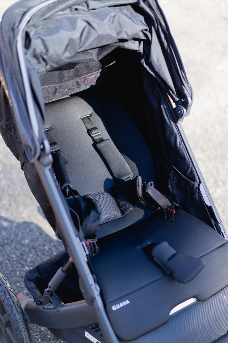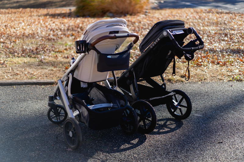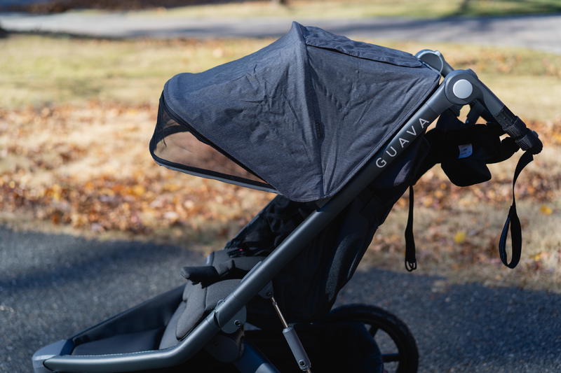 I can’t think of any downfalls for the Guava Roam stroller, but just by nature, it’s not a stroller for two. It’s specifically a stroller for one child, and doesn’t have that adaptability that the UPPAbaby Vista has, for a growing family.
