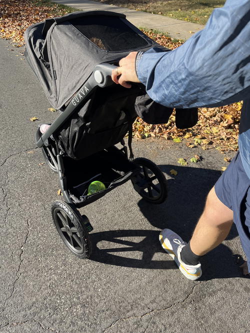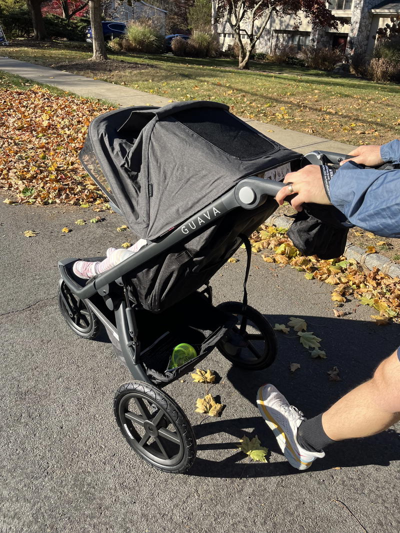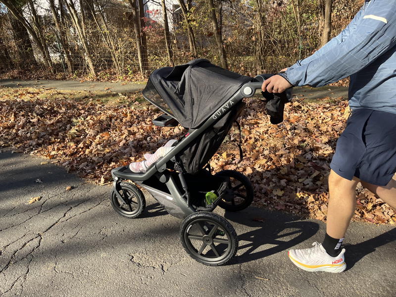 The first time I used the Guava Roam, I wasn’t used to running with a running stroller, and it was much harder than I expected. It’s at least 25% harder to run with a stroller, because you’re actively pushing something the entire time. So many parents make it look easy!