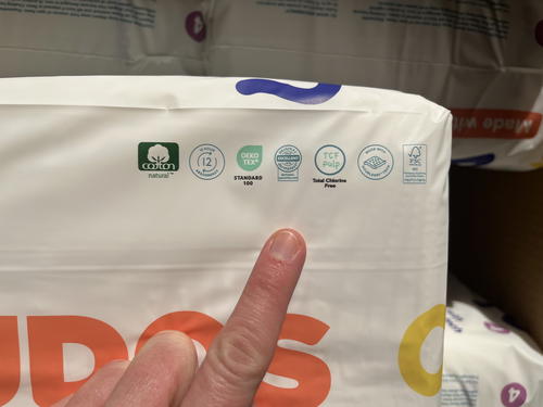 Kudos diapers are routinely tested, certified with certifications like OEKO-TEX® STANDARD 100 and EWG verified requirements (for the wipes) and made without parabens, alcohols, fragrances, chlorine or Propylene Glycol. And they replace that inner diaper liner (the one that touches a baby’s behind) with cotton, rather than plastic.