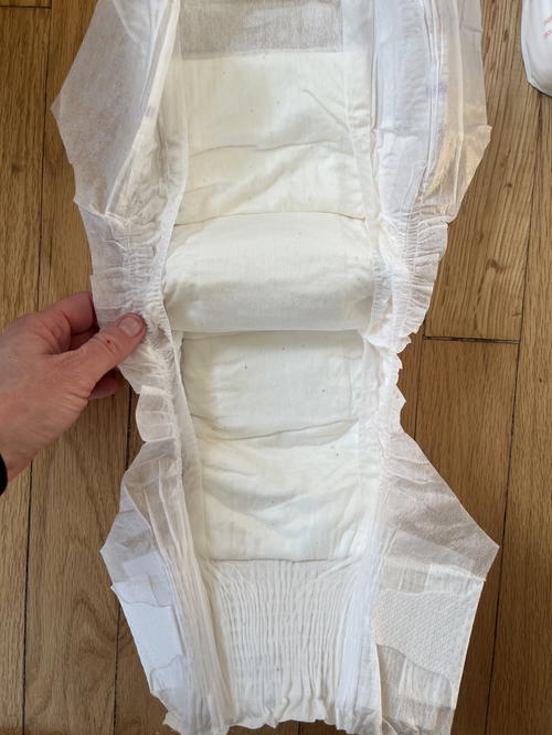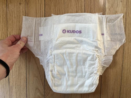 There’s nothing wrong with the Kudos diapers, though: there are no leaks, the diaper stays on for a 12-hour night without slipping, it keeps my child’s pajamas dry and there’s no fuss (also no rashes). The Kudos diaper does its job; I’m just being a harsh critic.