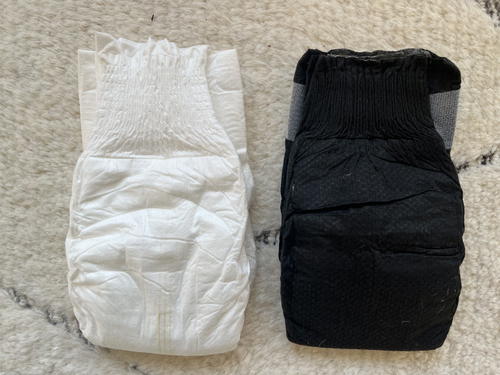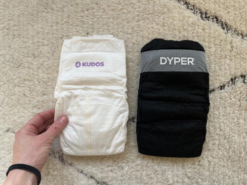 How does the Kudos diaper work out for overnight? So, it definintely can handle a 12+ overnight, is what I found after my testing. However, when I took it off, it felt exceedingly “heavy”–heavier than DYPER Charcoal Enhanced diapers feel when I dispose of them in the morning after 12-13 hours of sleep. I think this has to do with the thickness of the diaper itself, and DYPER’s Charcoal line, which we’ve also used for overnight sleep, are really thick.