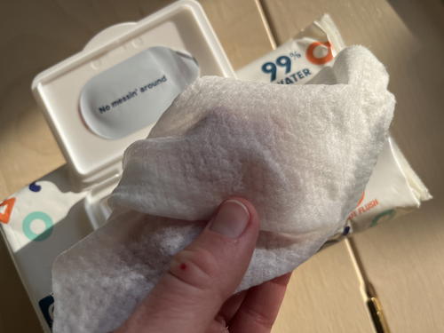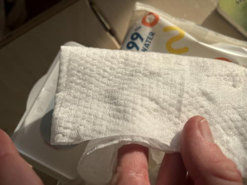 The texture: they are textured, and they feel nice ‘n wet. They’re a bit slippery, but not as slippery as Pampers wipes (my least favorite because of how often they BREAK during use).