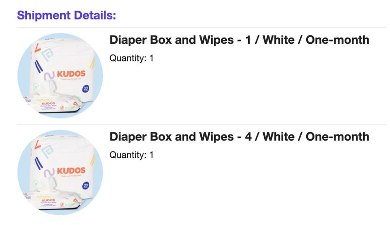 I wanted to try Kudos diapers and the company’s wipes, which are environmentally responsible. I received: