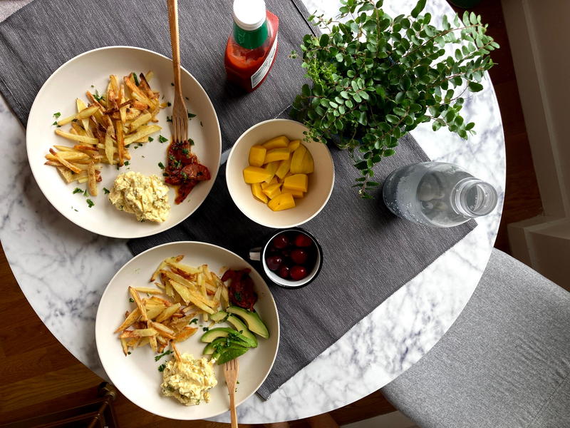 In my first 8 or so weeks of being a new parent and breastfeeding mother, I felt tired and busy all the time. One of the most awesome ways Dan helped me out was by cooking all my meals. Often, I’d be eating a meal while nursing the baby, because time somehow seemed to disappear, especially at bedtime.
