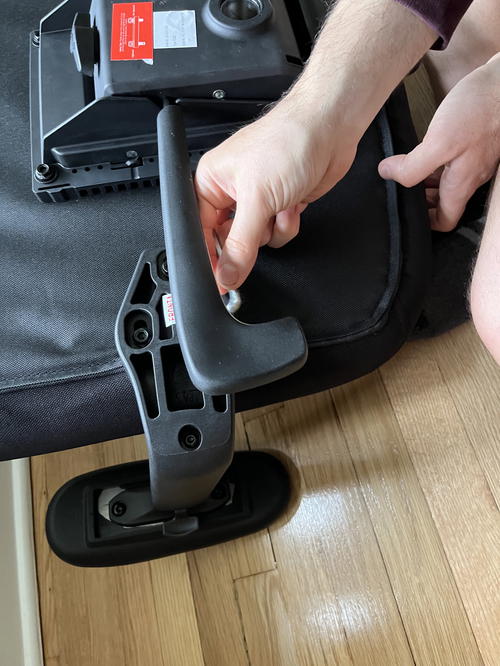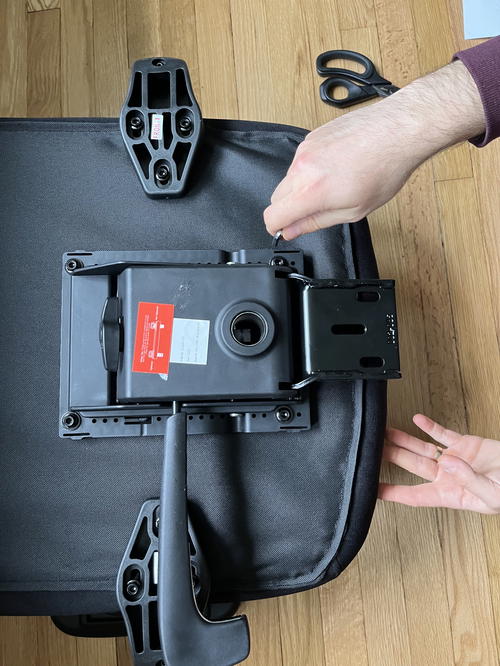 My tip: It makes it a lot easier to put the entire seat with the armrests attached on your sofa, while you are building it (see my photos here). At this point, the headrest, seat back, seat and base are all still not attached to one another.