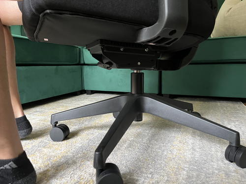 The Flexispot C5 Chair has adjustable lumbar support. This is cool because I’m short, and much below the average height for women. There’s an up/down and forward/back adjustment. Being as short as I am, I adjusted it with a few tugs to the lowest position and with the most intense lumbar support, close to the seat back.