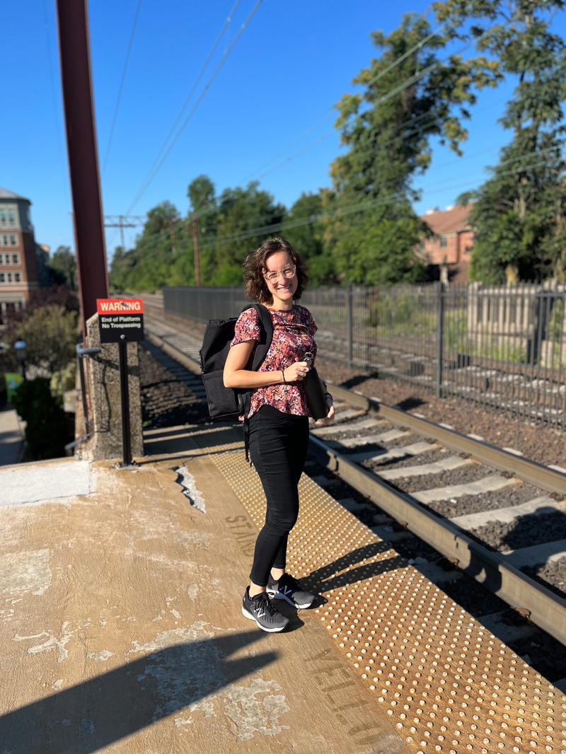 (Here’s me on the train platform heading into work, partaking in just one of the many ways to hide a baby bump, with a big water bottle!)