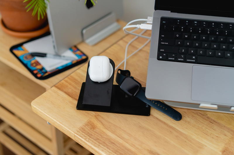A nice (and portable) remote work accessory that Dan has come to really enjoy is this Sandmarc dock for both an iPhone and Apple Watch. The magnetic spots also hold an AirPods case and can charge it up.